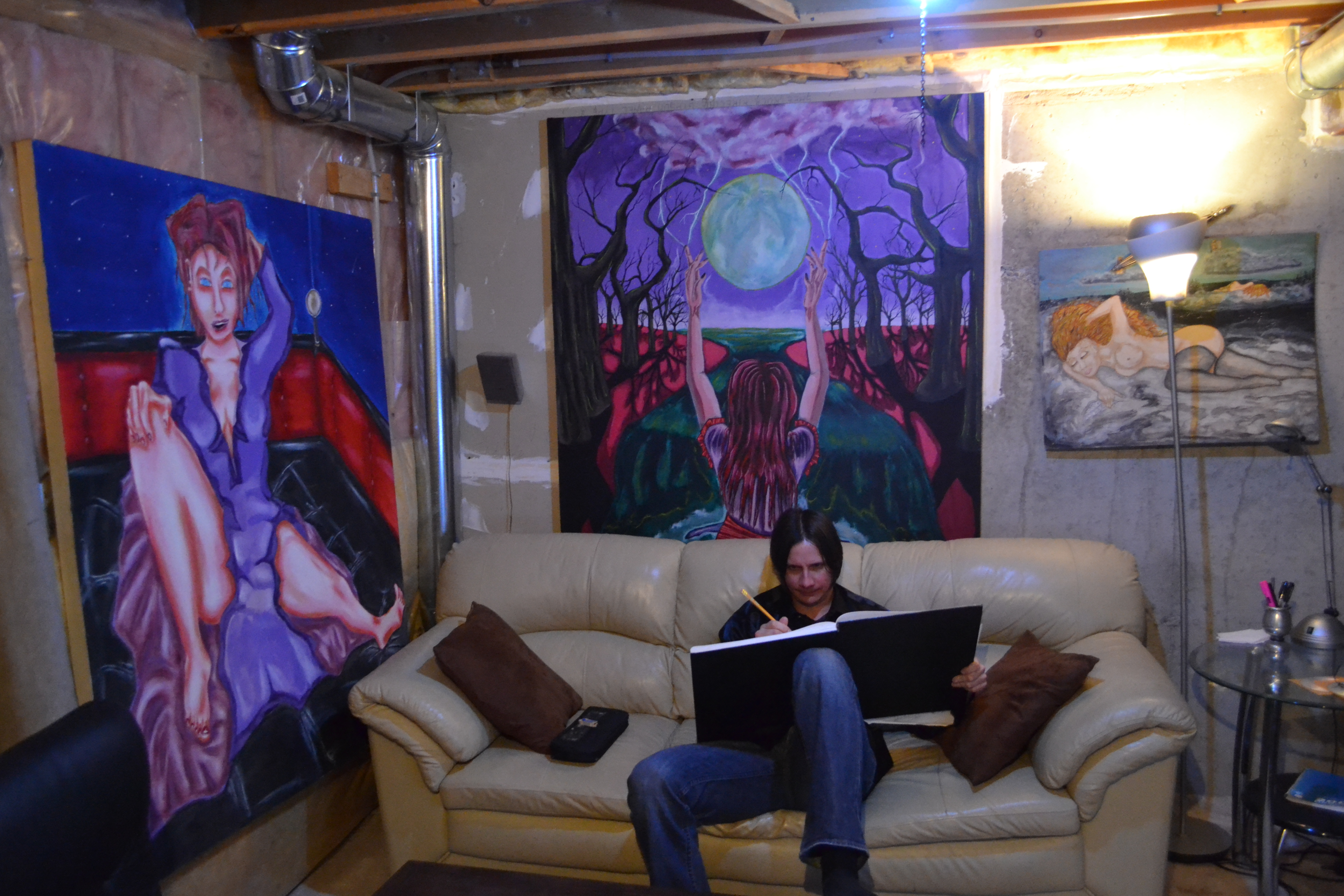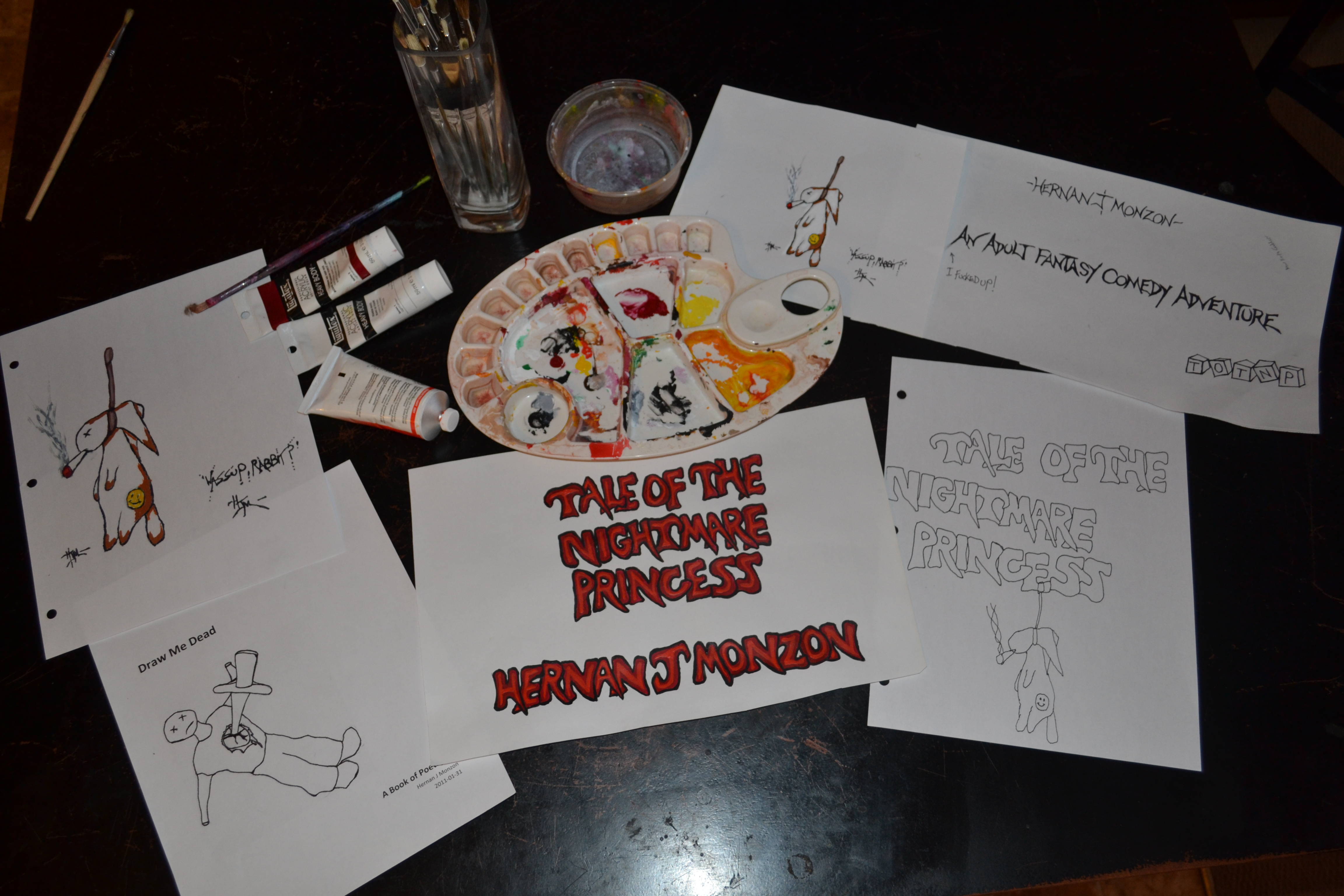 Cover Design: I went old-school with this simply because I had to learn photoshop because I wanted to do everything myself and now, beyond the extreme frustration at times, I am glad to have done so. First off, the back cover is redundant because this is only going to be an e-book. This is my folly because I like to come out swinging with both fists before even reading the damn instructions. But hey, I needed the photoshop experience. Secondly, I wanted to utilize my paintings where I could IF it suited the theme and aesthetic of the book. This does, I believe. If you think it’ shit definitely let me know so I can tell you to go fuck yourself. Just kidding. I’m all open arms to all suggestions, comments, and considerations.